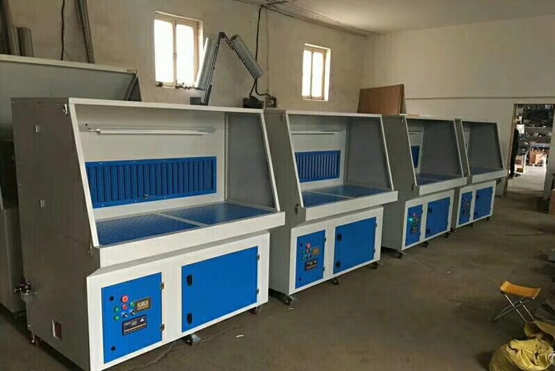 打磨拋光工作中,各類有害煙塵和粉塵通過打磨平臺(tái)進(jìn)入平臺(tái)內(nèi),在平臺(tái)內(nèi)進(jìn)風(fēng)口處設(shè)有火花分離裝置,可攔截進(jìn)入氣流內(nèi)含有的大顆粒